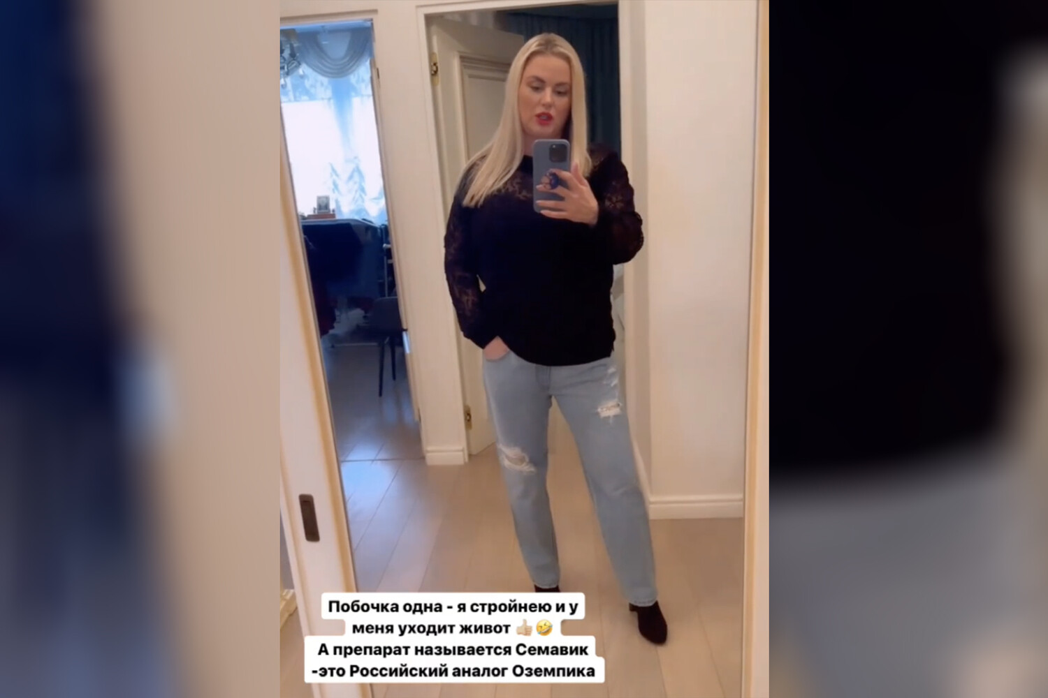 «Побочка одна — я стройнею, и у меня уходит живот. А препарат называется Семавик — это российский аналог Оземпика», — сообщила Семенович.