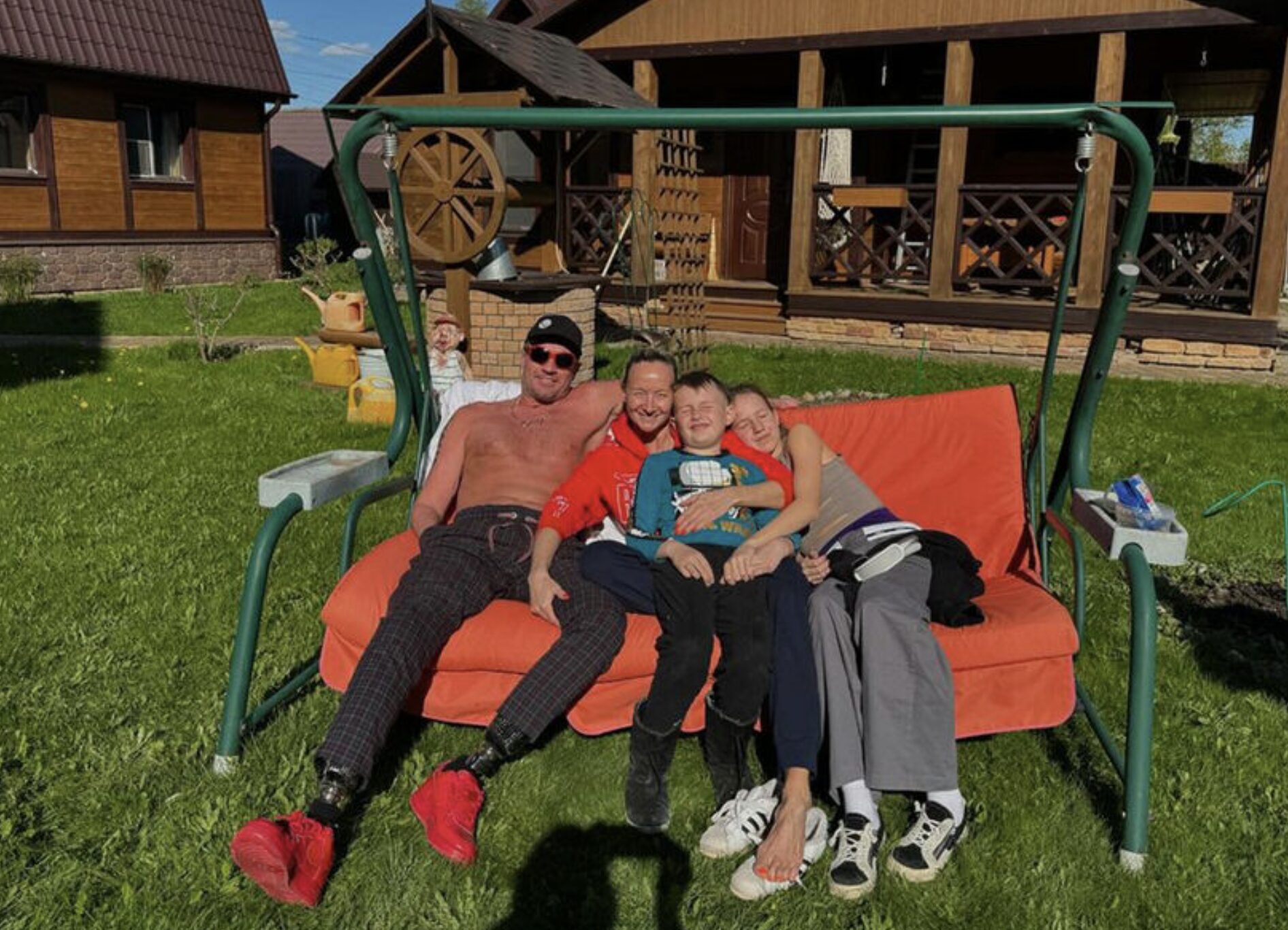 Спортсмен опубликовал фото, на котором сидит на качелях вместе с женой Оксаной Домниной и детьми. Они загорают и выглядят счастливыми.