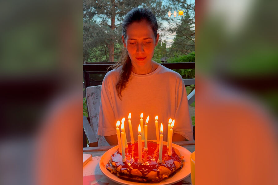 На размещенном в Сети кадре артистка предстала в домашней футболке перед тем, как задуть свечи на праздничном торте. При этом на снимке видно, на лице Снигирь отсутствует макияж и фильтры.