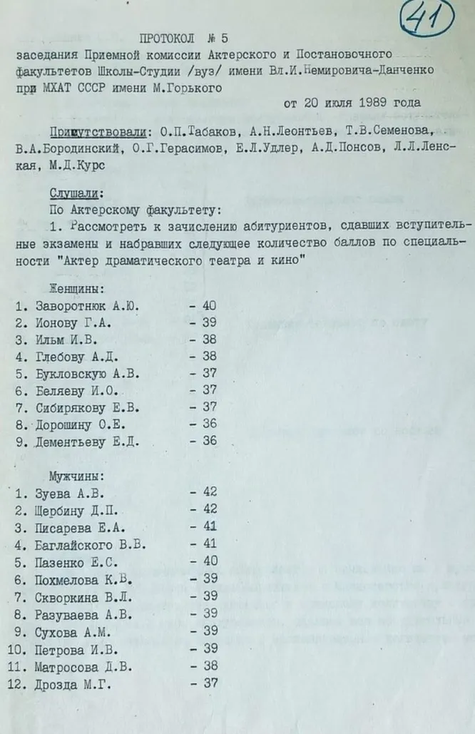 «Простились с Настей Завортнюк. Больно… Воспоминания каждую секунду возвращают в прошлое. Журналисты много спрашивали о студенческих годах, о том, как мы учились, какая Настя была в институте. Волею судеб у меня оказались уникальные документы приемной комиссии в школу-студию МХАТ от 1989 года. Никто и никогда не видел этих страниц ранее! Настя и при поступлении была лучшей! Светлая память!» — вспомнил он.