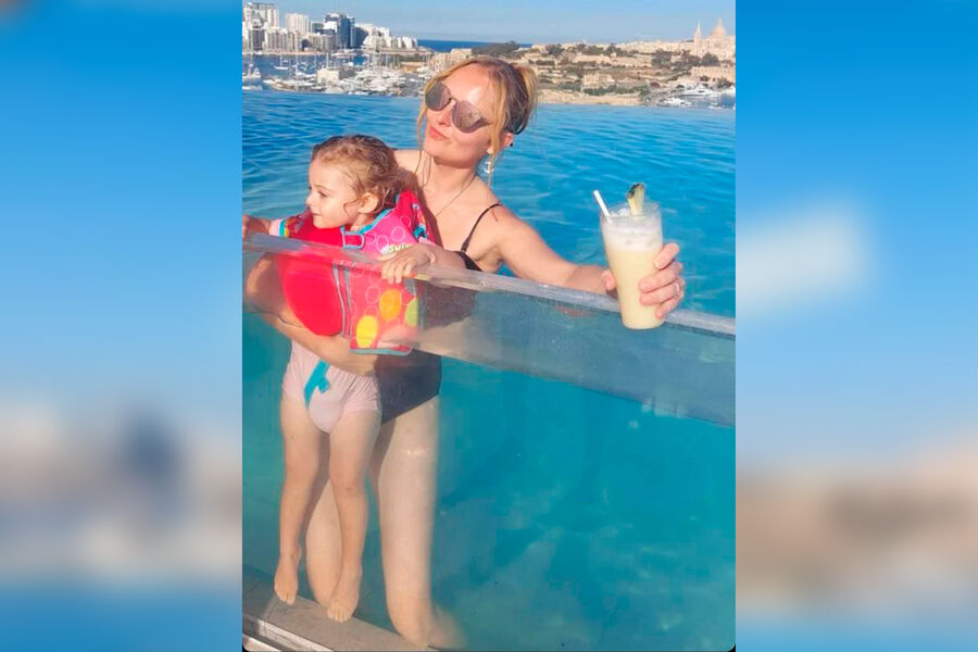 Елена Задорнова-Тартуси разместила серию снимков, на которых она предстала в слитном черном купальнике. На фотографии женщина позировала вместе с дочерью в бассейне.