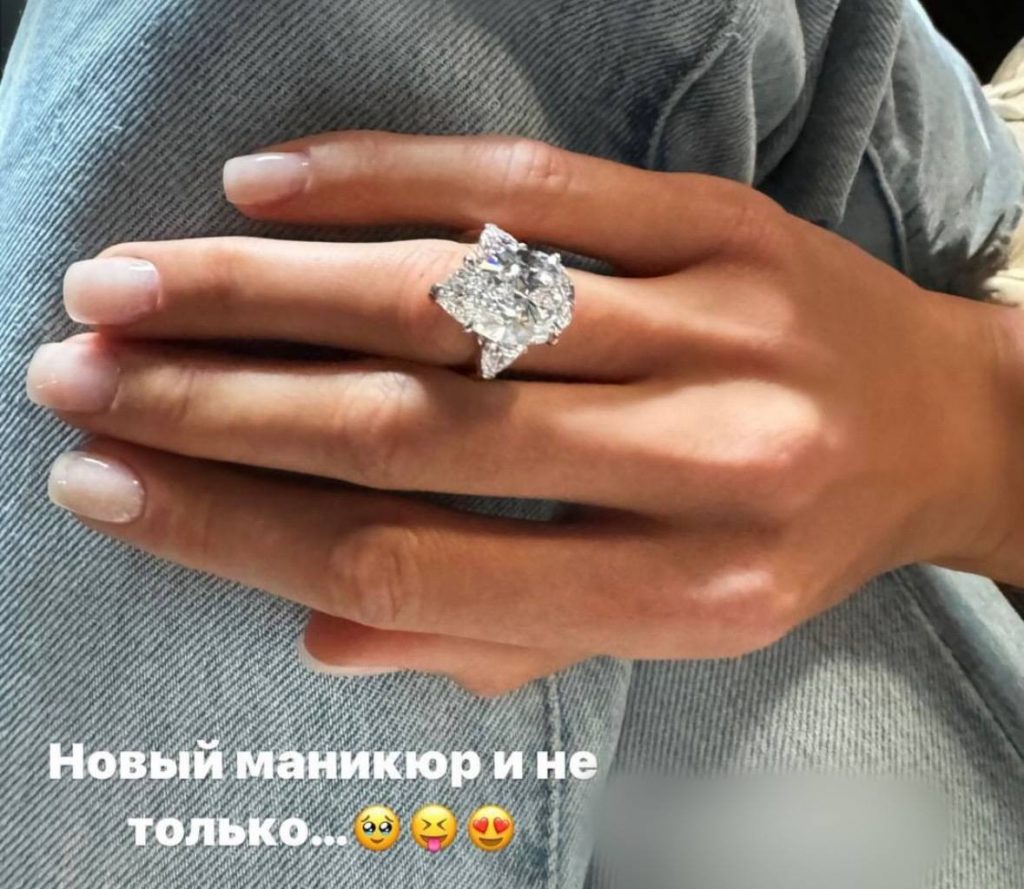 Бывшая возлюбленная в первую очередь рассказала, что сделала маникюр. Позже она намекнула о том, что на ее безымянном пальце появилось кольцо с большим бриллиантом.