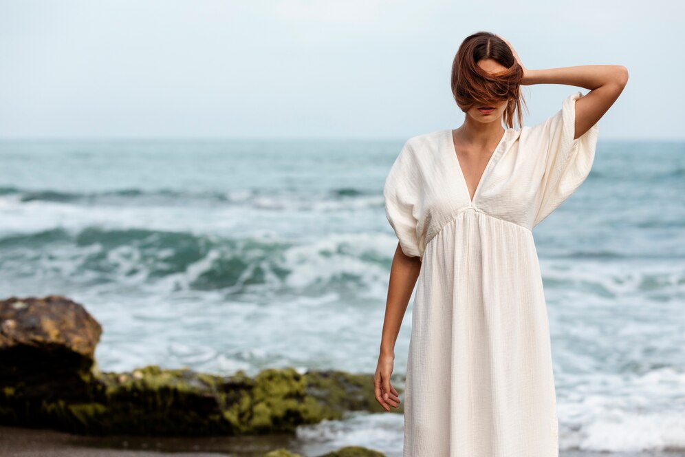- отдавайте предпочтение холодной цветовой гамме. Например, нежно-голубой не добавит объема, а вот та же вещь теплого розового оттенка сделает животик более выразительным. А еще чем насыщеннее цвет, тем меньше он будет добавлять полноты. И, кстати, более сдержанные тона и смотрятся более элегантными, особенно в сочетании с элементами белоснежного цвета.
