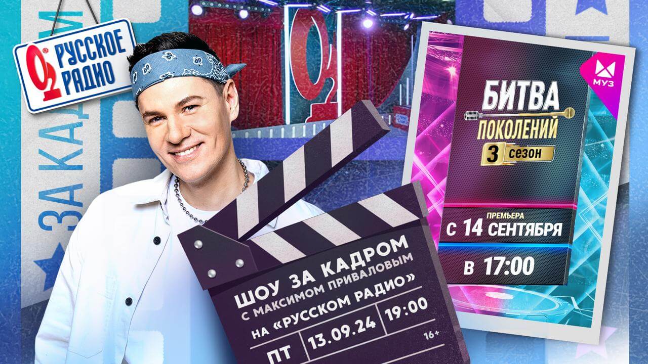 14 сентября в эфире телеканала МУЗ-ТВ стартует уже третий сезон рейтингового шоу «Битва поколений». «Русское Радио» – информационный партнер проекта на протяжении всех трех сезонов, и сегодня сотрудничество выходит на новый уровень. В эту пятницу, 13 сентября, в эфире «Русского Радио» слушайте новое шоу «За кадром с Максимом Приваловым «Битва поколений на МУЗ-ТВ»: все подробности закулисья и, конечно, звездные гости – в эфире любимой радиостанции.