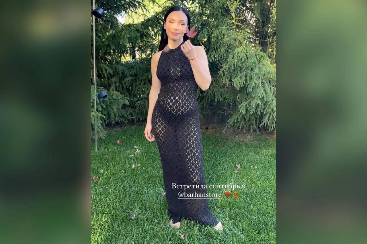 Так, позировала экс-солистка группы SEREBRO в черном платье в крупную сетку, сквозь которое был виден такого же цвета купальник.