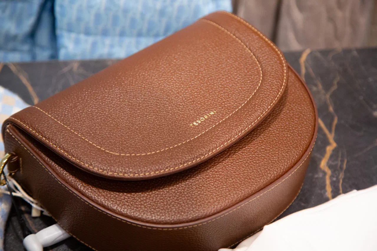 Как носим: Желтое платье / юбка / брюки + коричневый кардиган / свитер / рубашка + коричневая сумка.