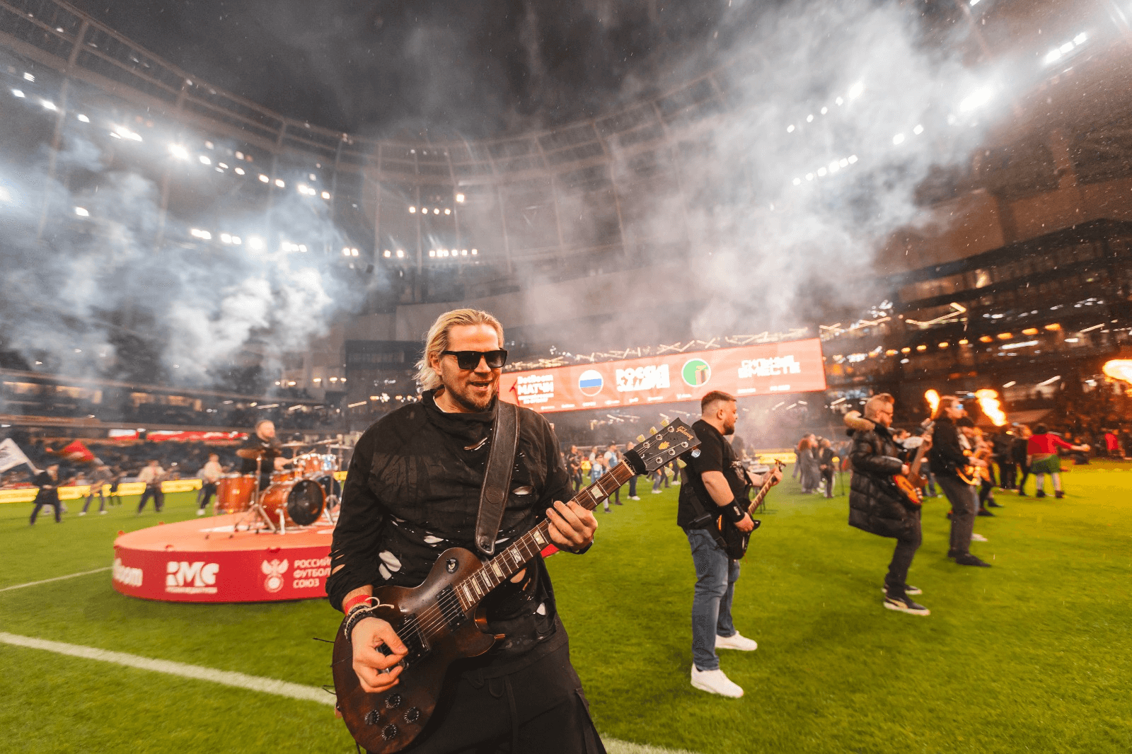 Более 500 музыкантов пригласил Российский футбольный союз и «Русская Медиагруппа» на рок-флешмоб перед товарищеским матчем Россия — Замбия. Ритм вечеру задал неувядающий хит «Парк Горького».